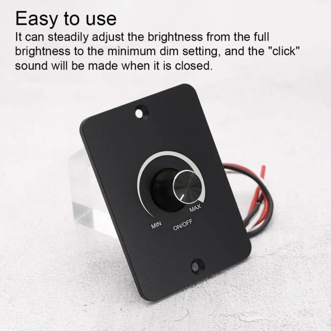 Description: Convenient Dimming: Enhance your RV experience with our 12V Light Dimmer that allows you to easily adjust the brightness of your LED lights Durable and Functional: Our Light Dimmer PWM switch provides reliable and safe control over your LED lighting, ensuring smooth operation and extending their lifespan Easy Installation and Maintenance: With the Rotary Knob , installing and maintaining our Dimmer PWM LED switch is simple, making it for DIY enthusiasts Compatible with Various Applications: Our Multifunction Dimmer is compatible with a wide range of LED products, including strip lights, bulbs, and fixtures, offering flexibility in your lighting choices Efficient Lighting Control: The Dimmer PWM technology allows for precise and efficient adjustment of light intensity, giving you the ambiance for any occasion