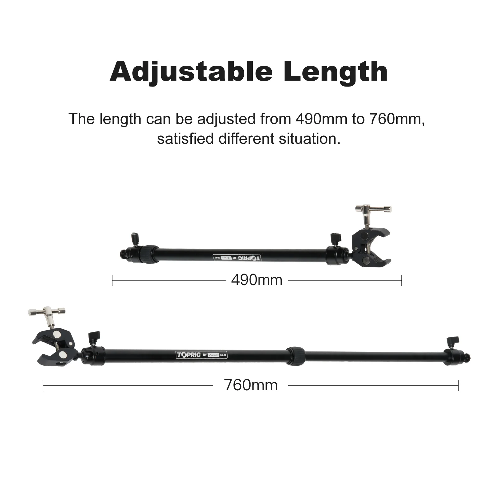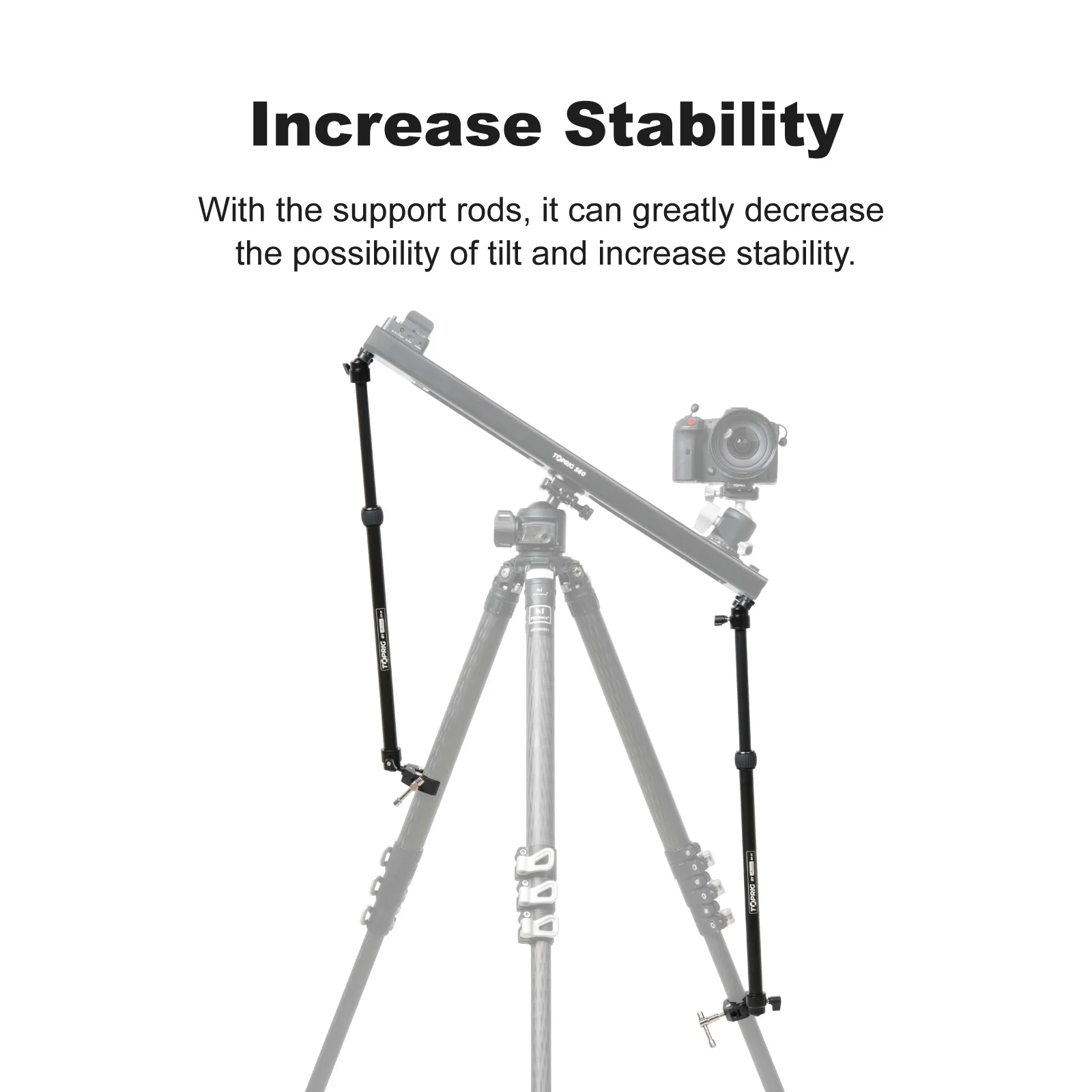 Material: High-strength Aluminum Alloy Adjustable Length: 490mm to 760mm Compatibility: Universal 1/4 Threaded Mounting Holes Multi-Angle Movement: Yes Stability Enhancement: Increased Stability with Support Rods Portability: Fits Inside Tripod Bag for Easy Storage **Enhanced Stability and Versatility** The 1 Pair Camera Video Slider Rail Support Rod is a must-have accessory for any photographer or videographer looking to elevate their dolly track photography. Made from robust high-strength aluminum alloy, these support rods are not only durable but also lightweight, ensuring they can withstand the demands of any shooting scenario. The adjustable length feature, ranging from a compact 490mm to a spacious 760mm, allows you to tailor the support rods to the specific needs of your setup, be it a tight urban environment or an expansive outdoor landscape. The multi-angle movement capability ensures you can achieve the perfect shot from any angle, while the support rods work to minimize tilt and increase stability, providing a solid foundation for your camera equipment. **Ease of Use and Portability** Designed with user convenience in mind, the camera rail support rod's adjustability is effortless. Loosen and tighten the knobs to quickly adjust the length and secure the rods for stable shooting. The C clamp's adjustable width, ranging from 10mm to 55mm, guarantees a firm grip on the tripod's legs, ensuring your camera remains steady throughout your shoot. When not in use, the support rods can be easily stored and transported, fitting snugly inside your tripod bag without adding significant bulk. Whether you're a professional photographer or a hobbyist, this camera rail support rod tripod accessory is the ideal companion for any creative endeavor, from product shoots to cinematic landscapes. **Compatibility and Performance** Compatible with a wide range of tripods with 1/4 threaded mounting holes, these support arms are a versatile addition to your photography gear. They are specifically tailored to work with the S60 video slider, ensuring seamless integration with your equipment. The support rods' performance is backed by the ACCSOON brand, known for its quality and reliability in photography accessories. The adjustable length and multi-angle movement capabilities make this camera rail support rod a valuable asset for both indoor and outdoor shooting scenarios, catering to the needs of both novice and seasoned photographers.