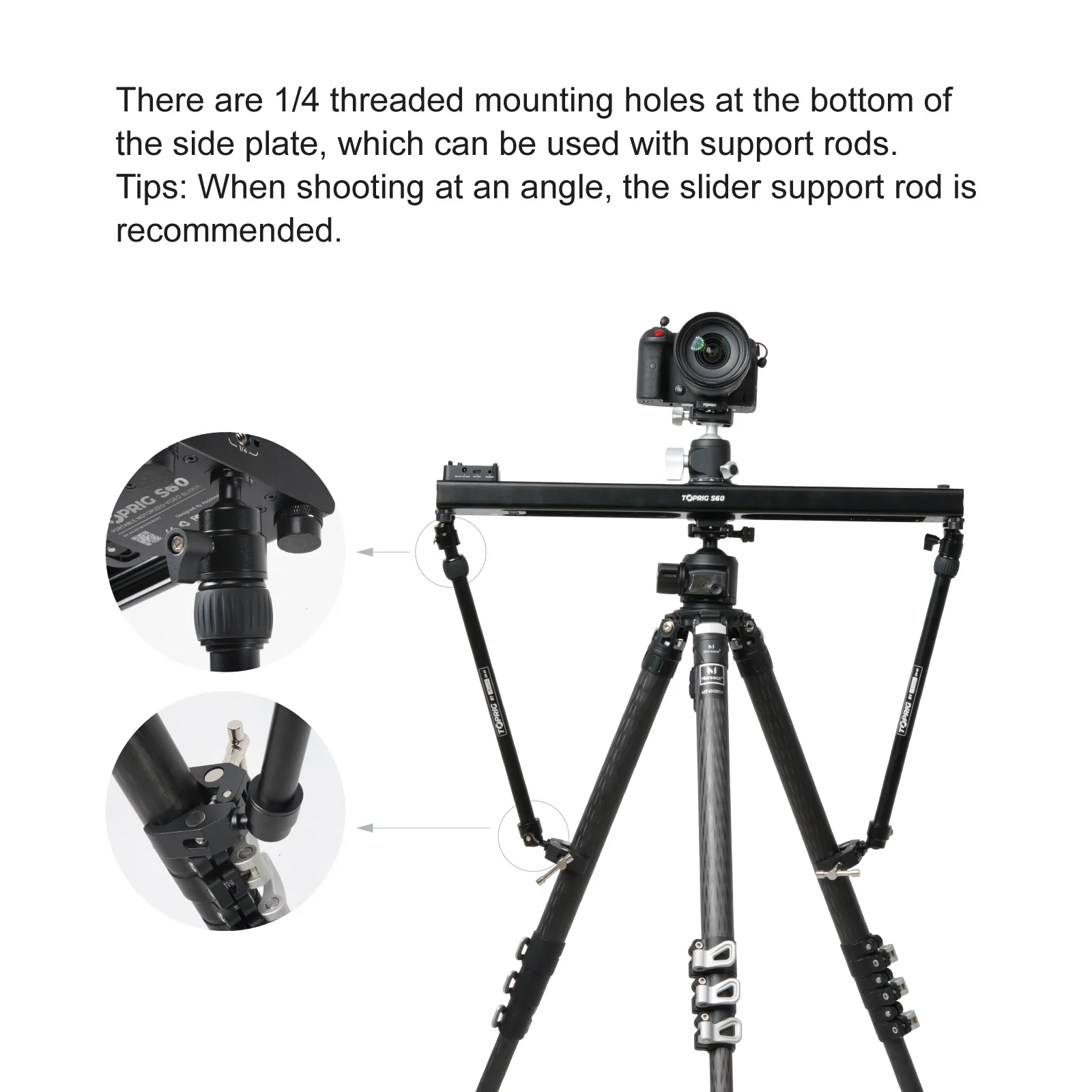 - 【Wide Compatibility】The support arms are compatible with a wide range of tripods with 1/4 threaded mounting holes at the bottom of the side plate, like our product S60 video slider.