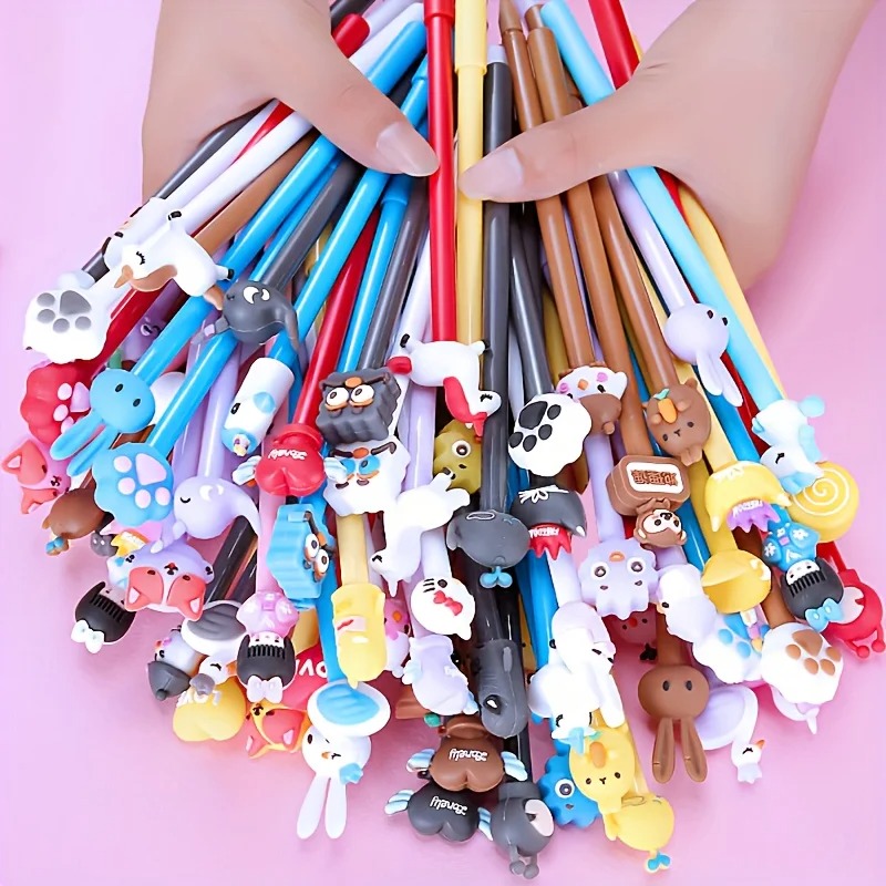 10/50/100pcs Cute Ballpoint Pens Smooth Writing Gel Pens with Creative Cartoon Caps for Office & Study Stationery Supplies