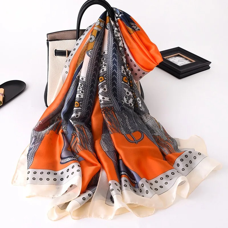 Elevate your style with this beautiful 100% silk scarf, inspired by the iconic Tree of Life painting by Klimt. The scarf features a stunning blue and orange colour palette, perfect for adding a pop of colour to any outfit. With its high-quality silk material, this scarf is a must-have for any fashion-forward woman’s wardrobe.