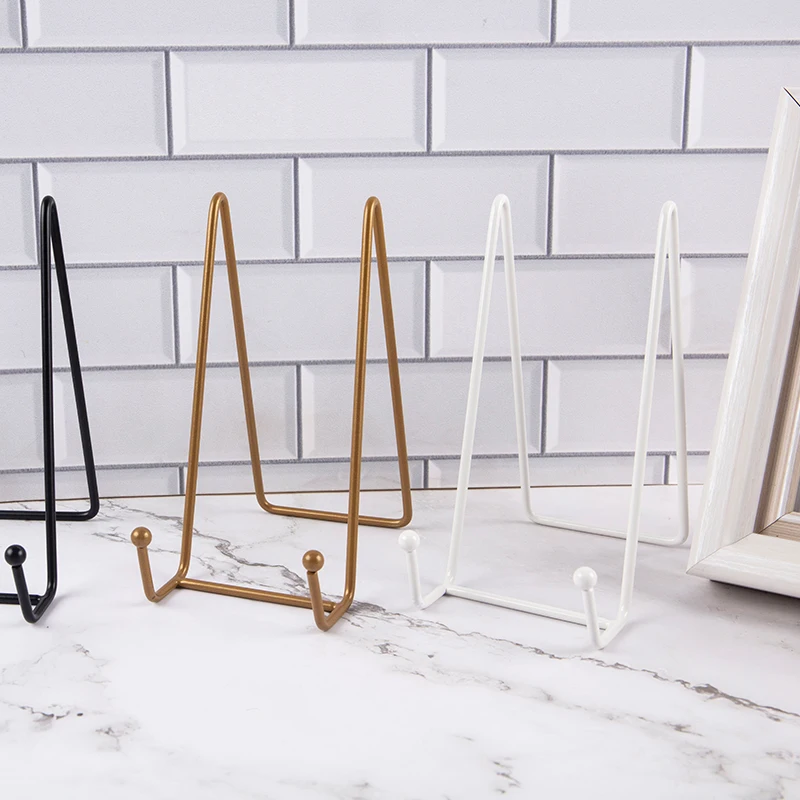 1pc Plate Display Stand Picture Easel Metal Plate Stands Holder Display Pictures Frame Photo Decorative Plate Dish Tabletop Arts