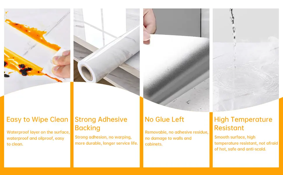 Features: Self-adhesive, waterproof, mildew-proof, stain-proof, high color fastness. Great for renters and homeowners!