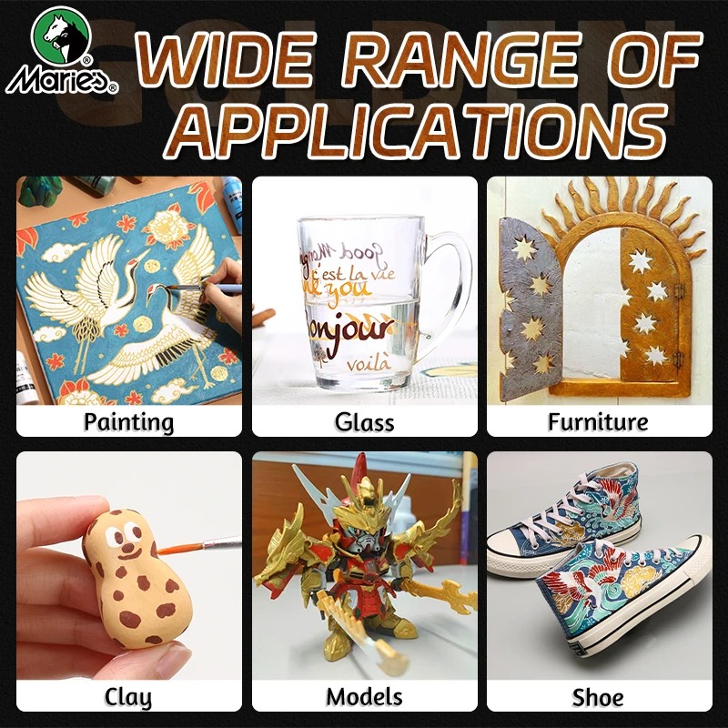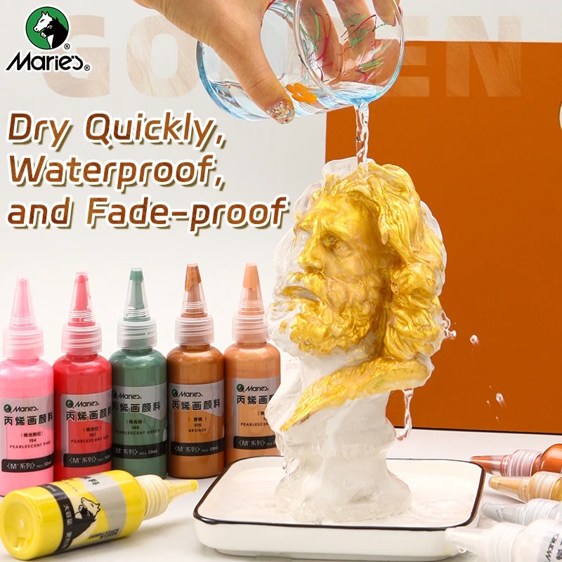 50ml Marie’s Metallic Acrylic Paint, Pearlescent Rich Shiny Pigments with Bottle, Golden Slivery for DIY Art Painting, Wood, Gl