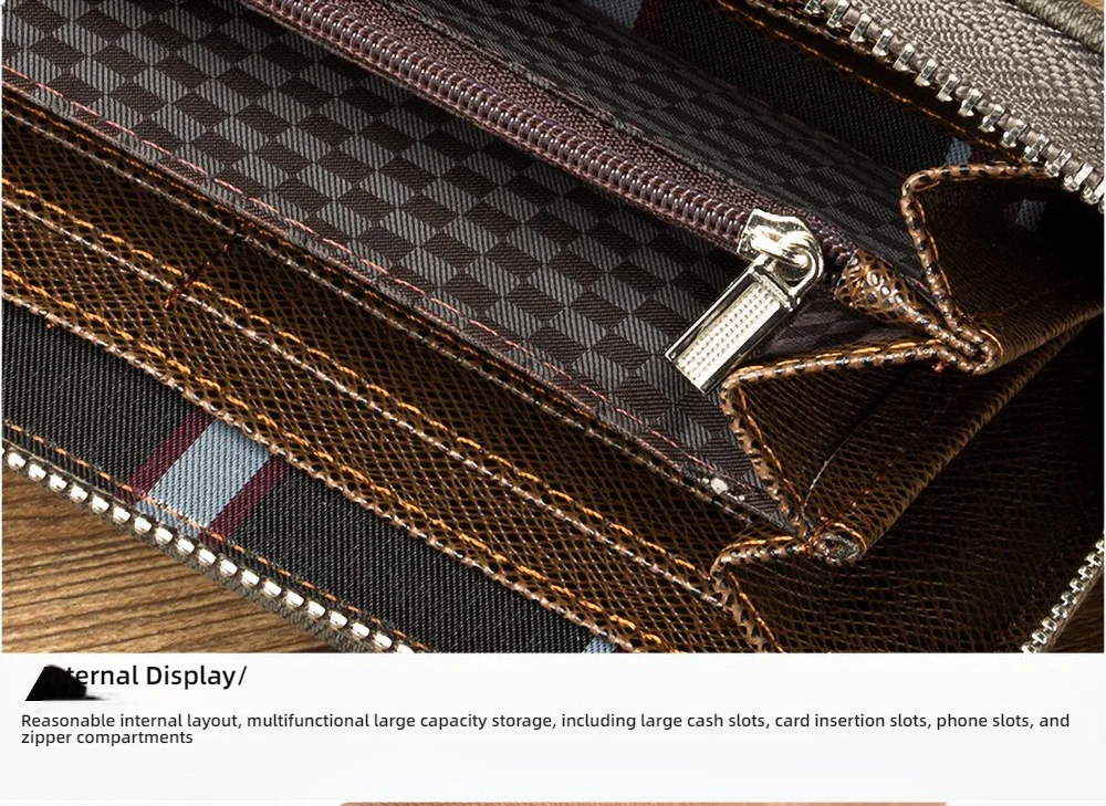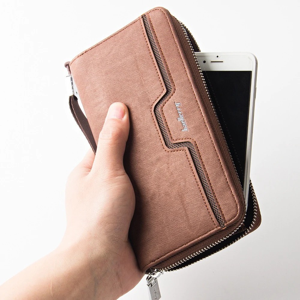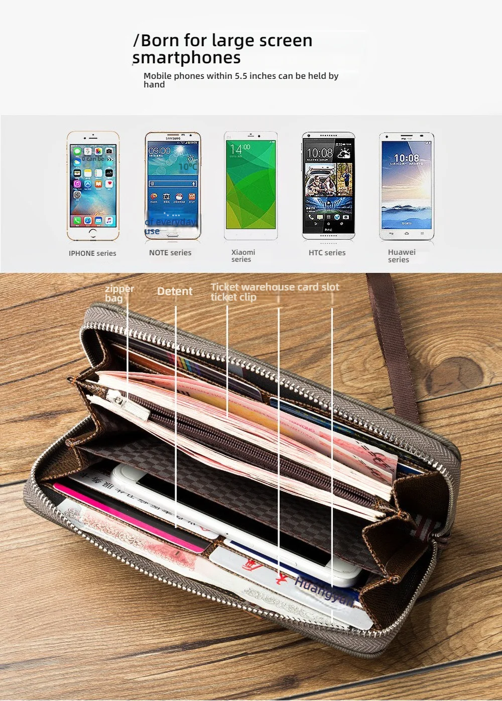 Baellerry Men’s Long PU Wallet with Wrist Strap Organ Style Multi – Card Slots Phone Holder Zipper Clutch for Large Screen Smart