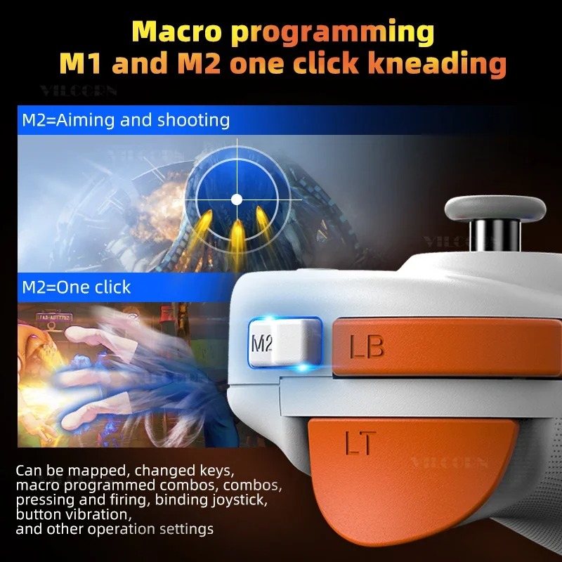 3. Support macro programming, six-axis gyroscope body sensing, HD double vibration motor, with RGB light adjustable.
