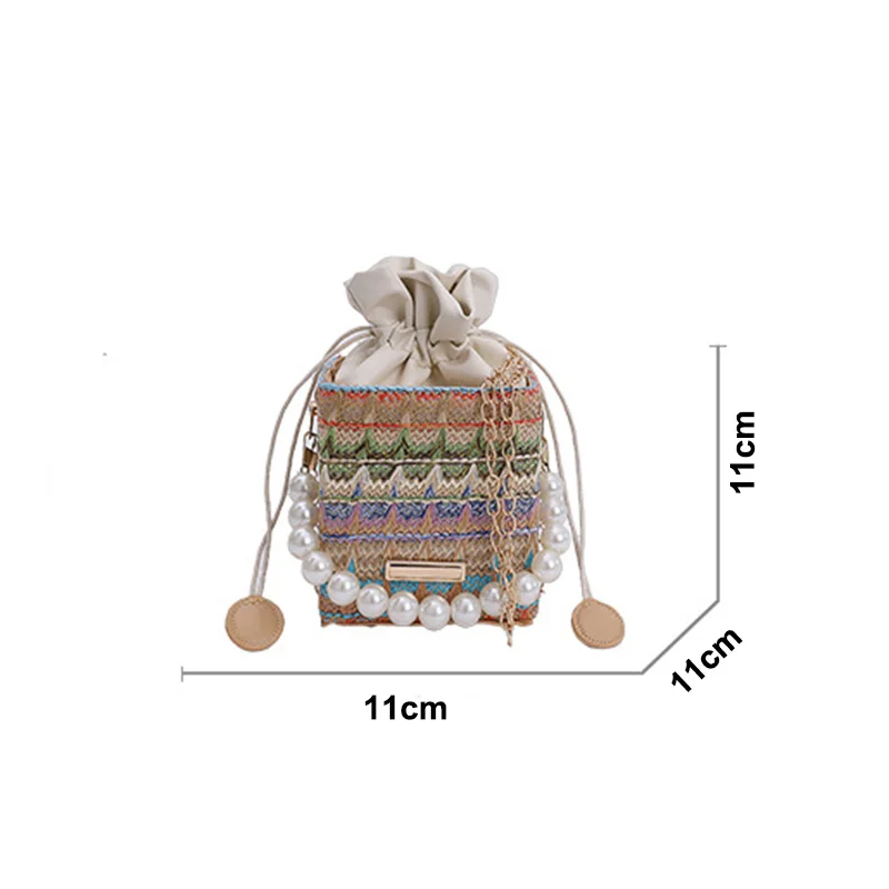 Fashion Woven Square Small Crossbody Bag for Women Imitation Pearl Chain Handbag