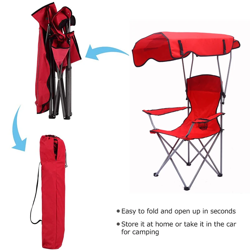 USEFUL: The folding camping chair is equipped with cup holder and canopy, Conveniently holds cups and outdoor sunshade.