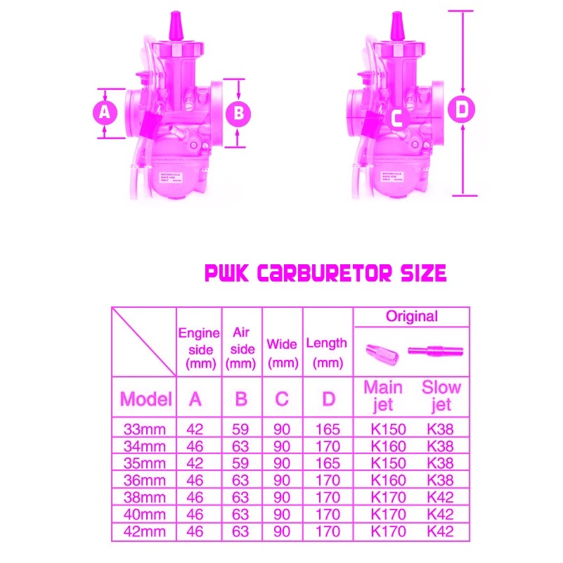 We can supply carburetor size33mm 34mm 35mm 36mm 38mm 40mm 42mm usually used at beyond 150cc engine( 250 300 350 400 …. cc)