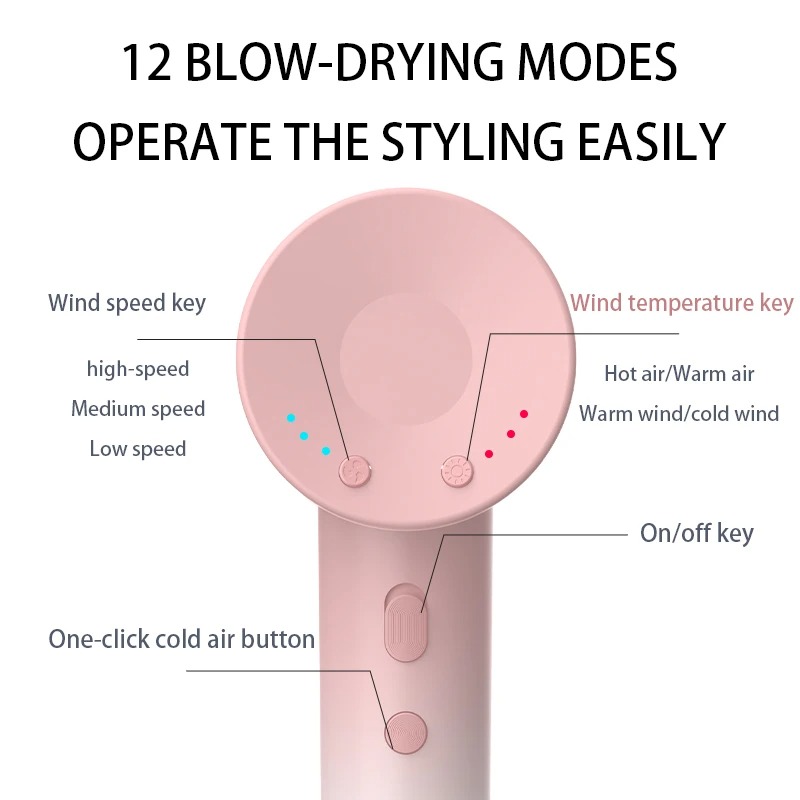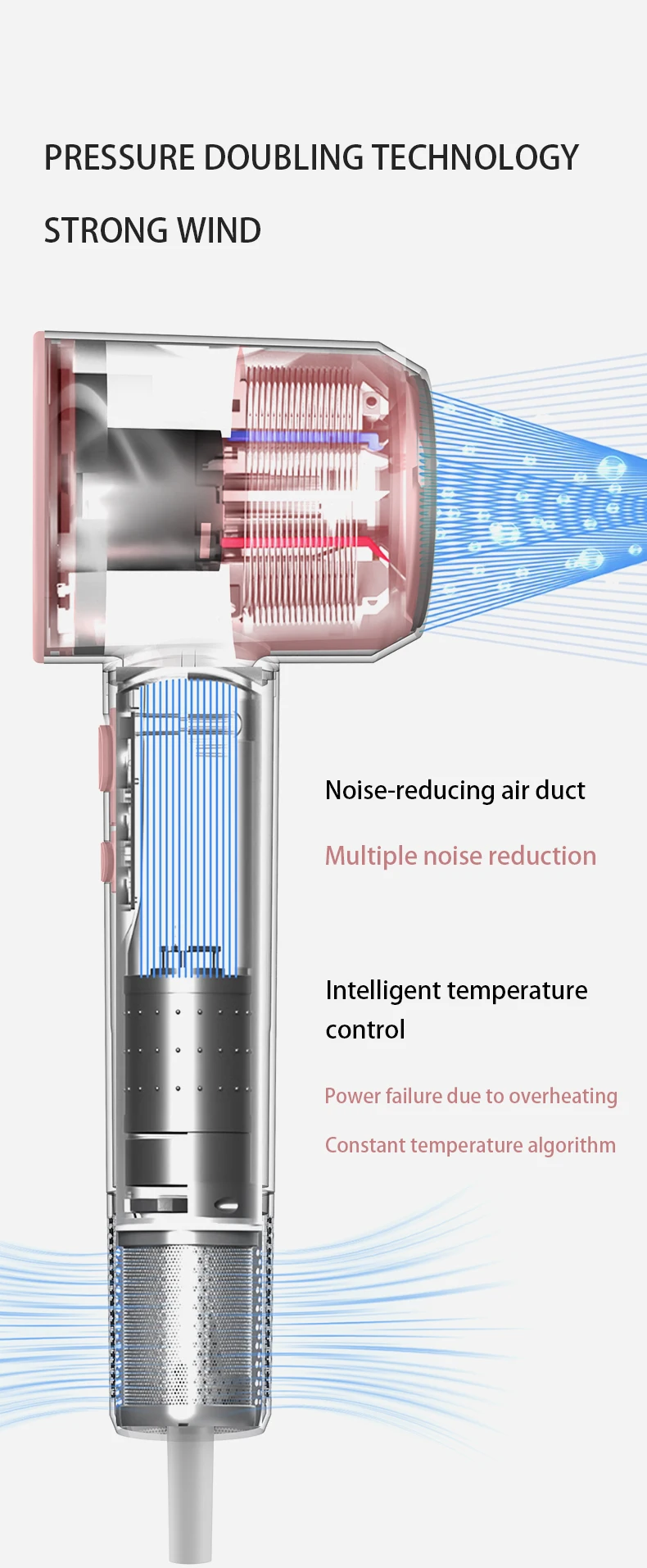 High Speed Electric Hair Dryer High Power 1600W Negative Ion Hair Care Fast Drying Low Noise No Hair Injury