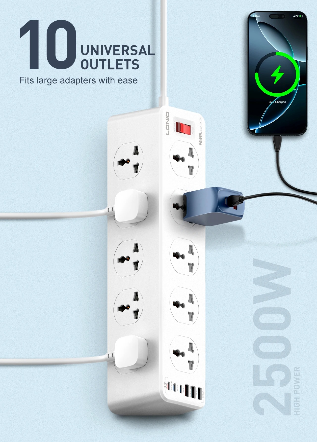 Equipped with 10 outlets, this power strip ensures all your devices are conveniently powered and organized.