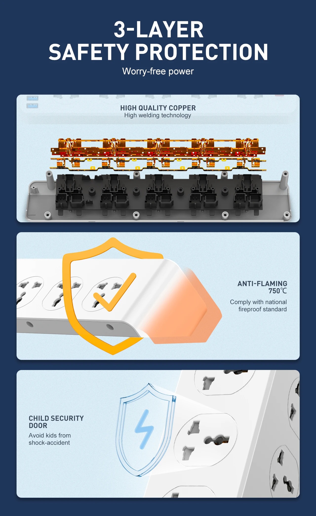 The overload protection feature prevents damage from excessive power usage, keeping your devices safe.