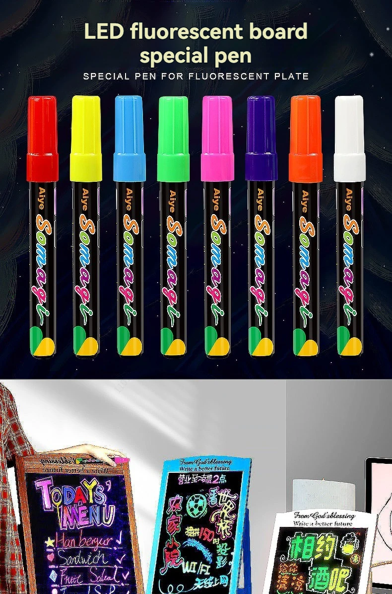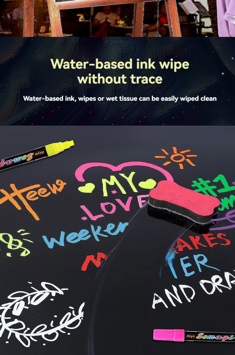 Liquid Erasable Chalk Markers Pens – 8 Colors Washable & Wet Erase Neon Art Makers for Blackboard Chalkboard Signs, Glass Window