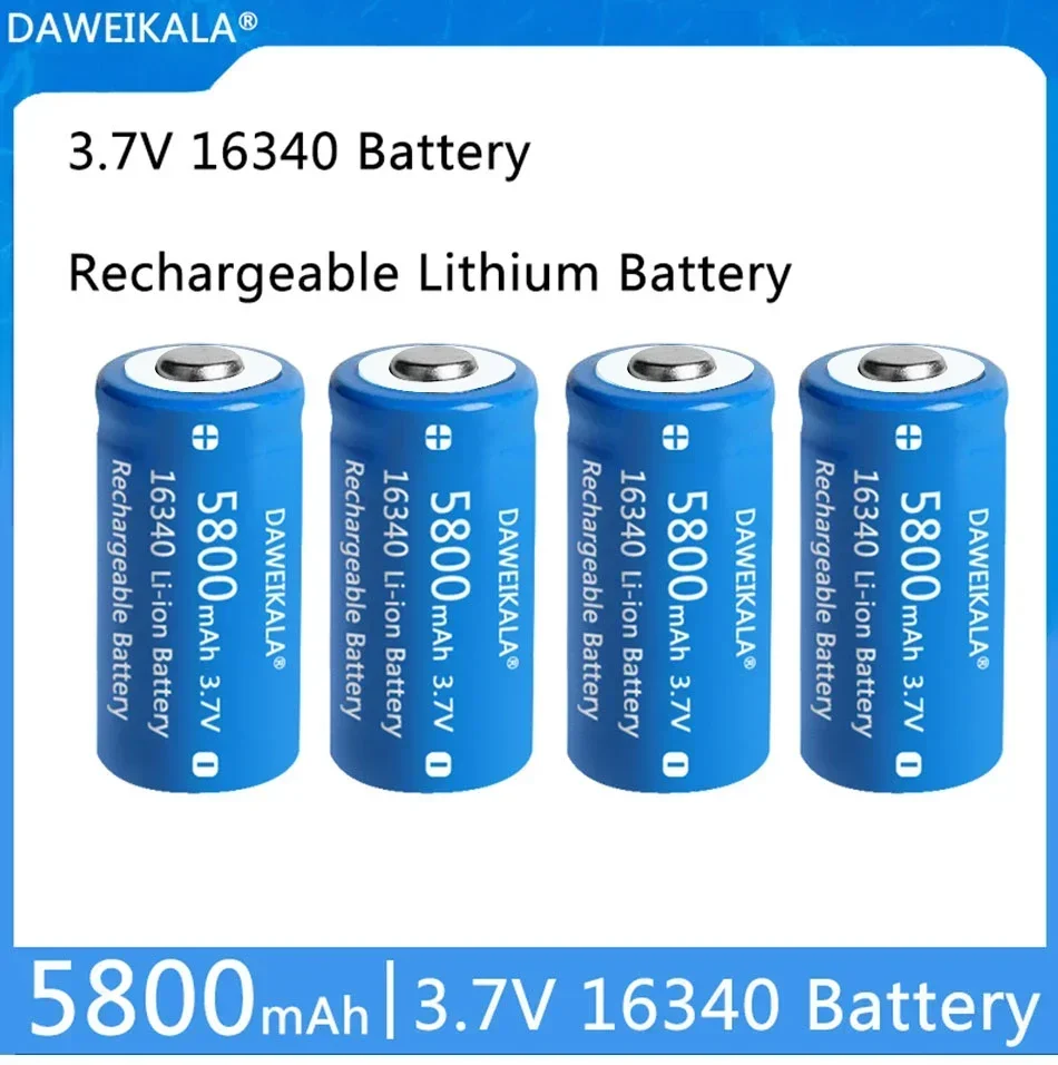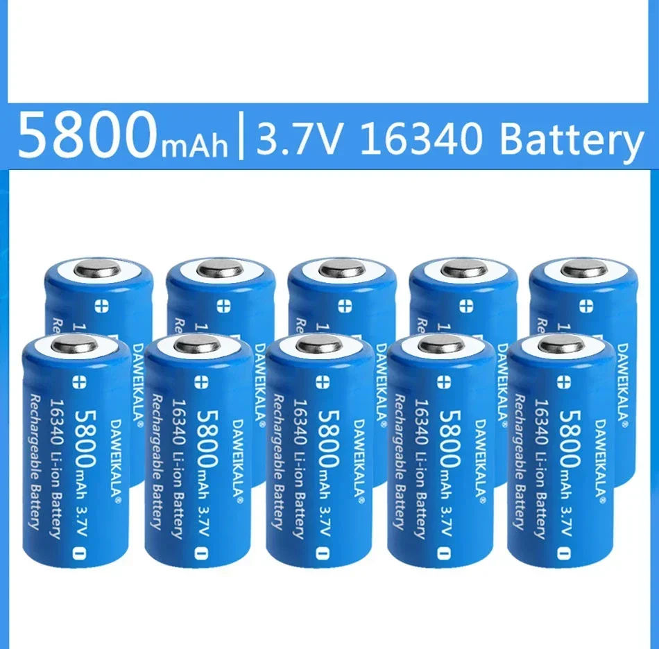 3.7V 5800mah 16340 Battery CR123A Li-ion Rechargeable Batteries LED Flashlight Flashlight Electric Car Toy Cake