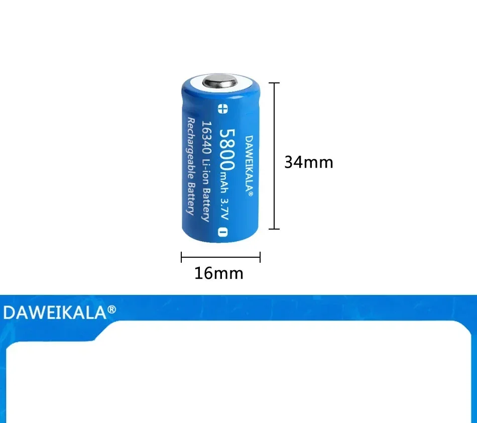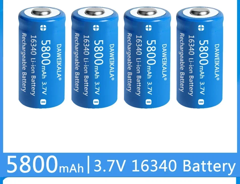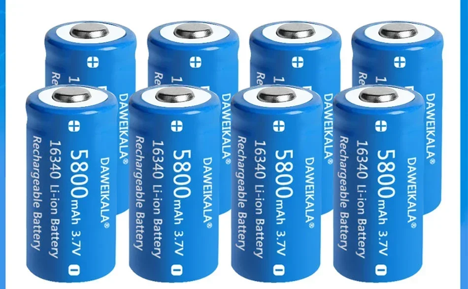 High capacity 3.7V 5800mAh 16340 battery.