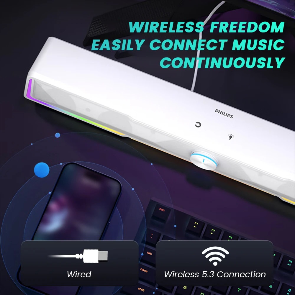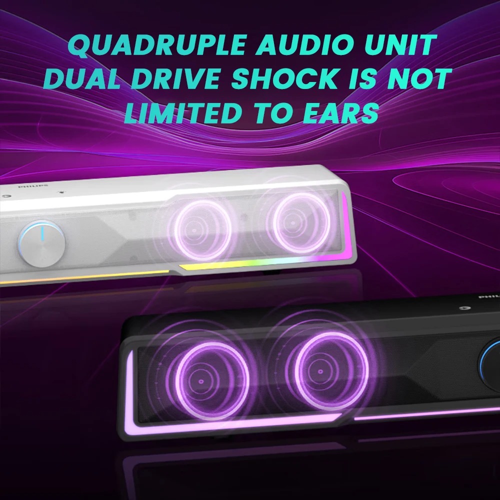 PHILIPS SPA4100 Soundbar Simple Design 52mm Driver Unit Stereo Environment Featuring RGB Light Strips And Independent Knobs