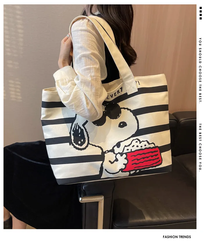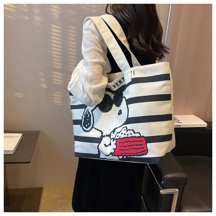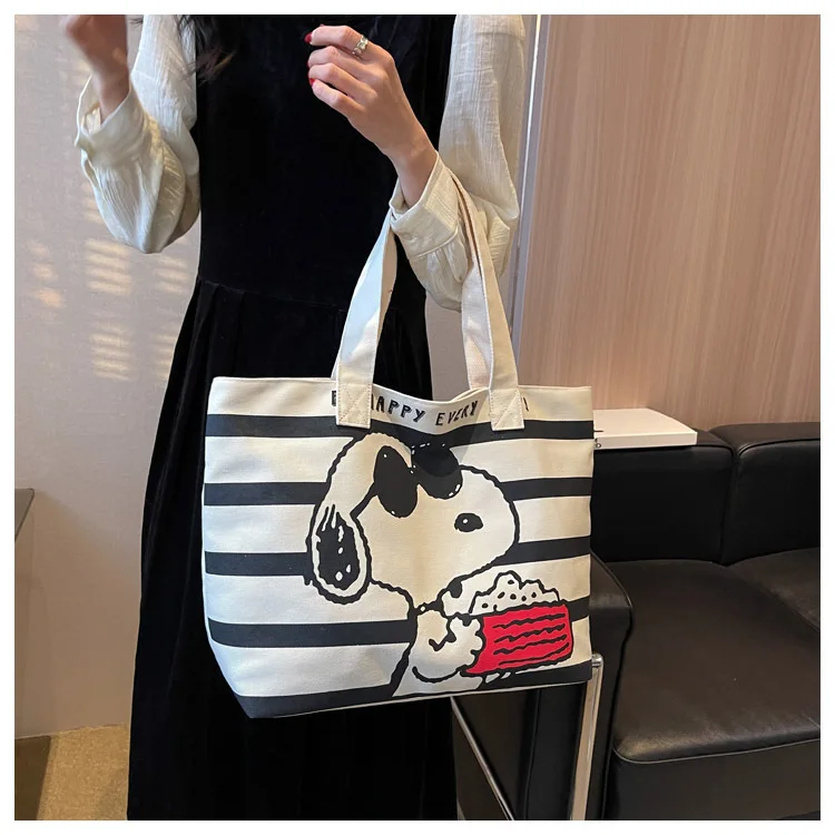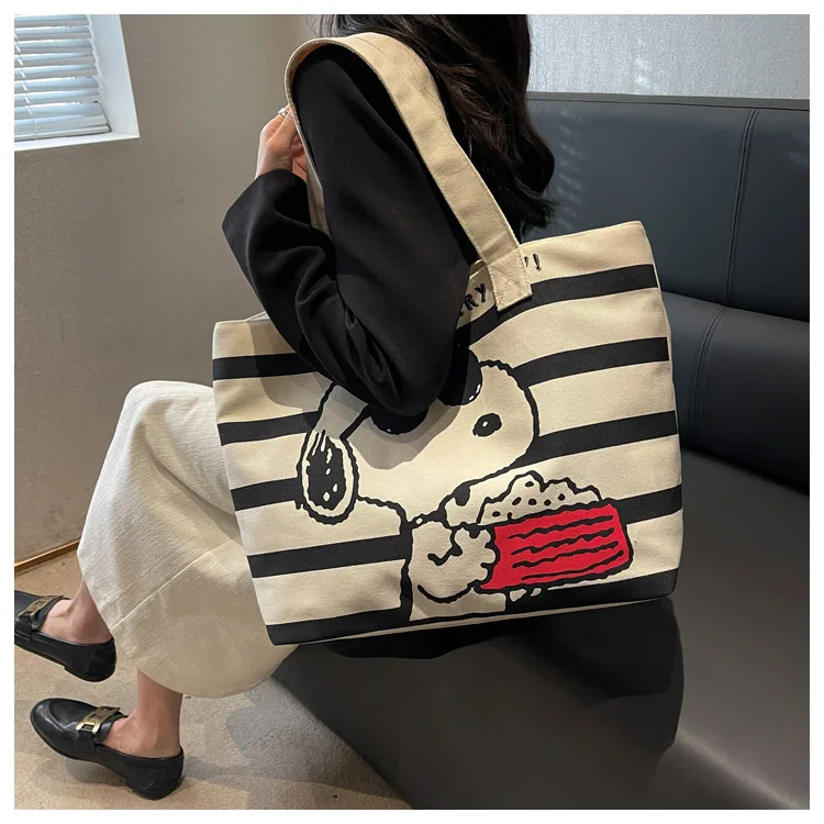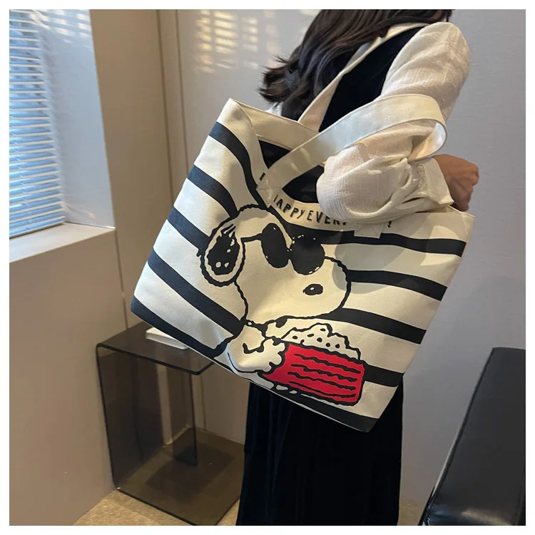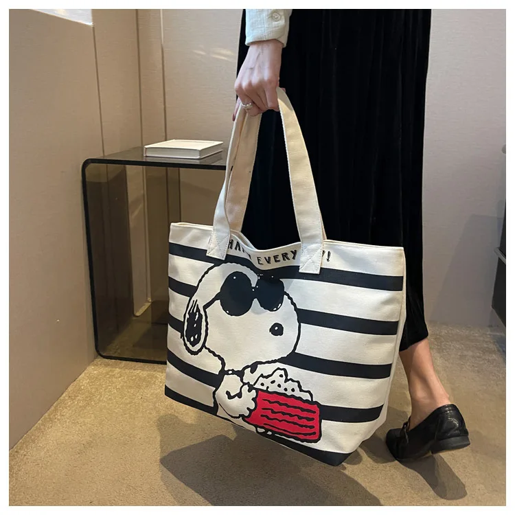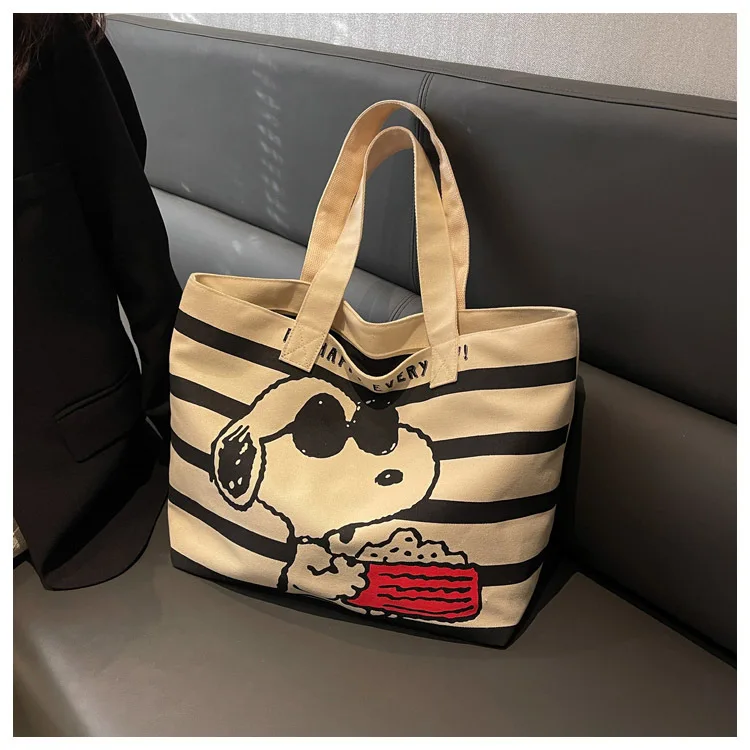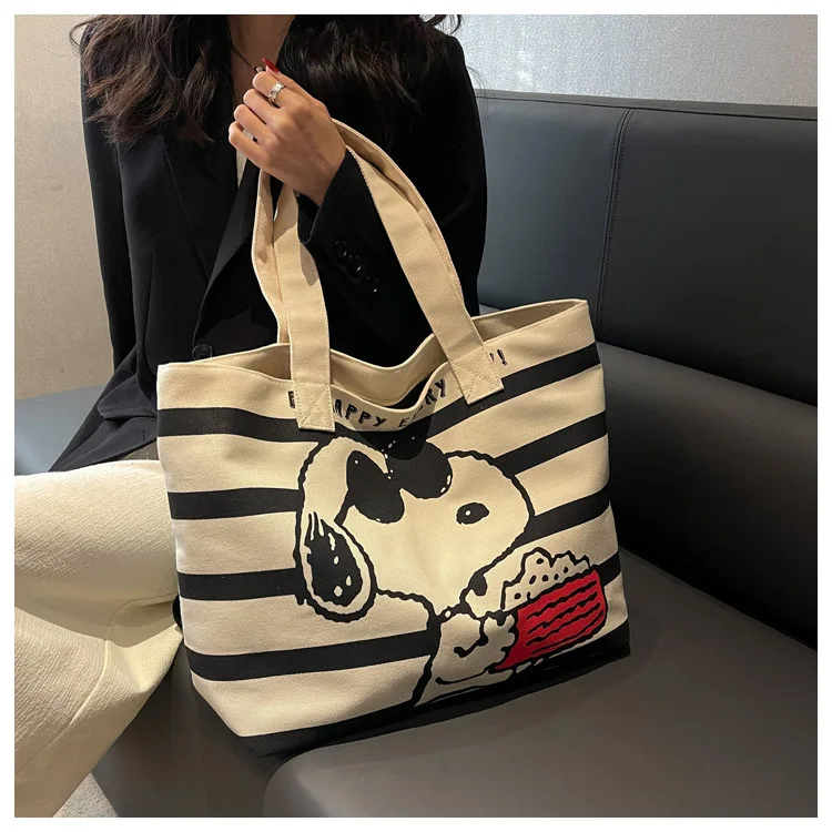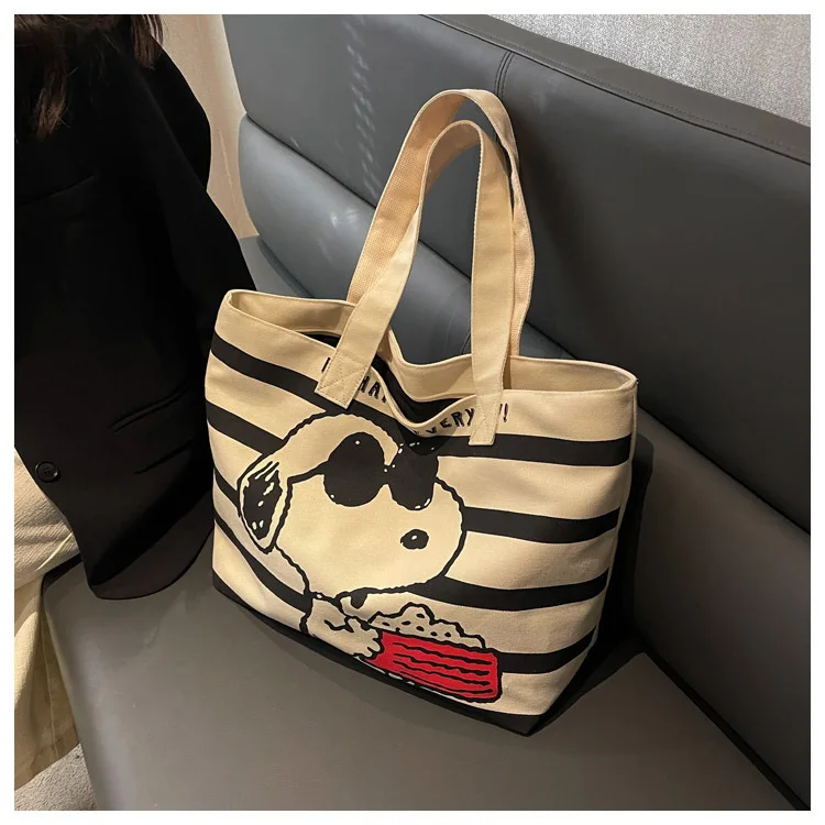 Snoopy Cute Cartoon Fashion Trend Large Capacity Canvas Bag Student Bag Tote Bag Changing Bag Party Surprise Highlights