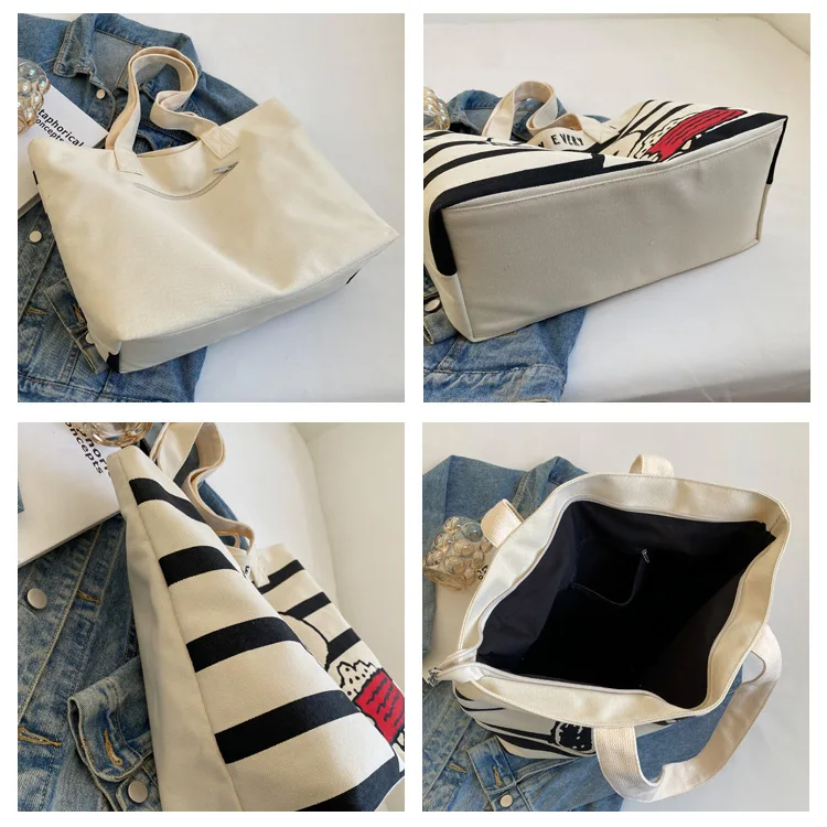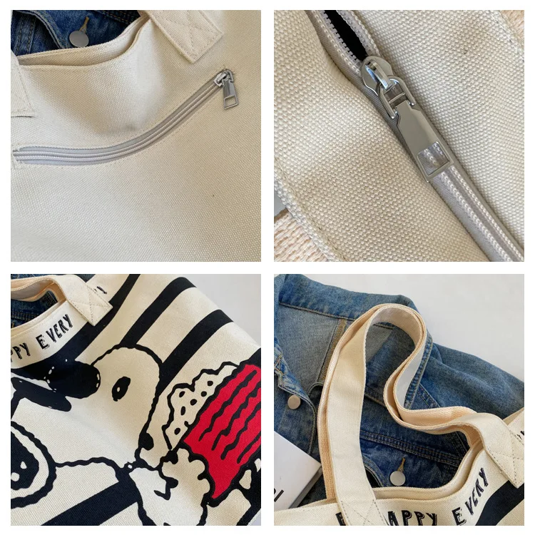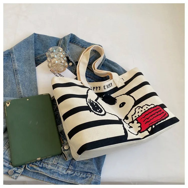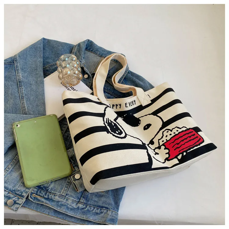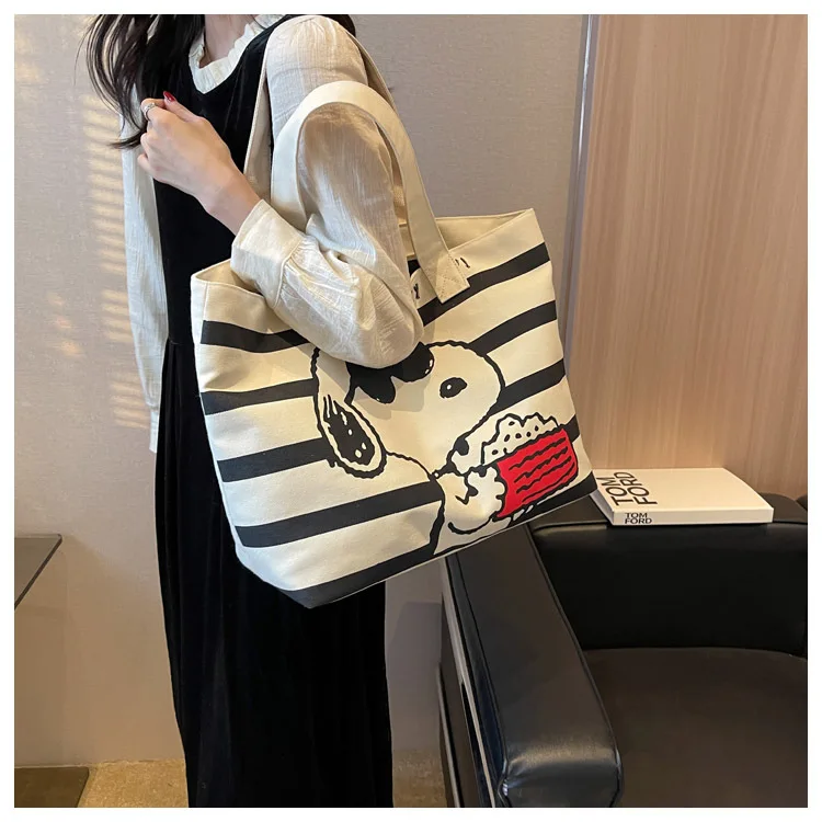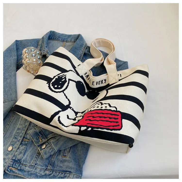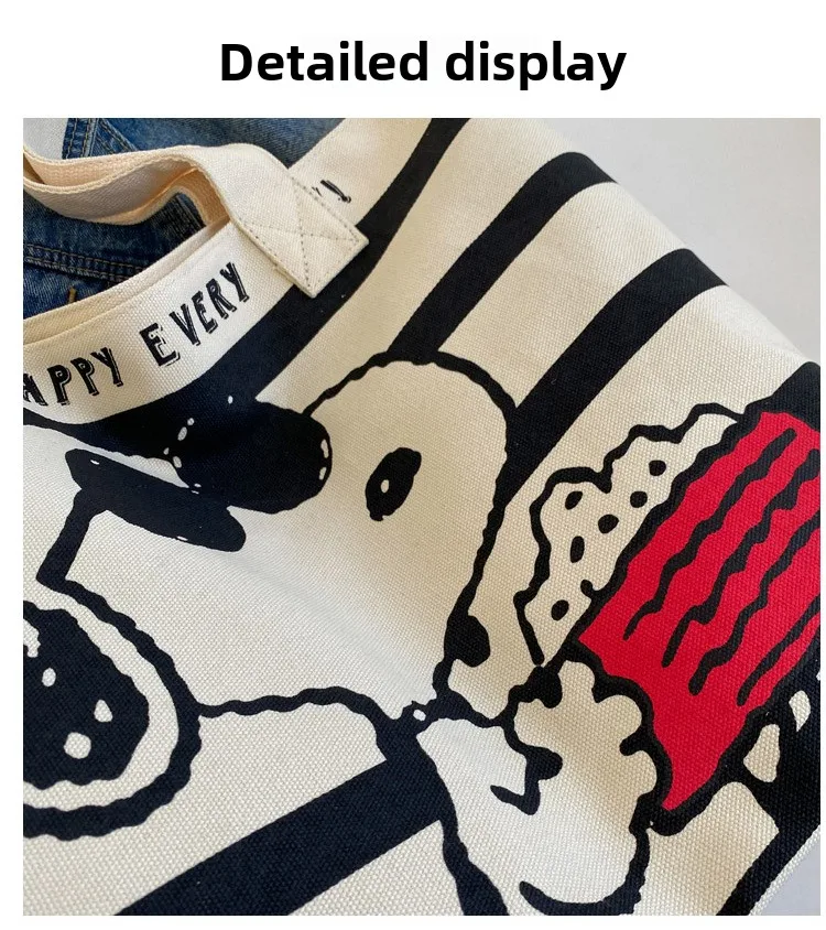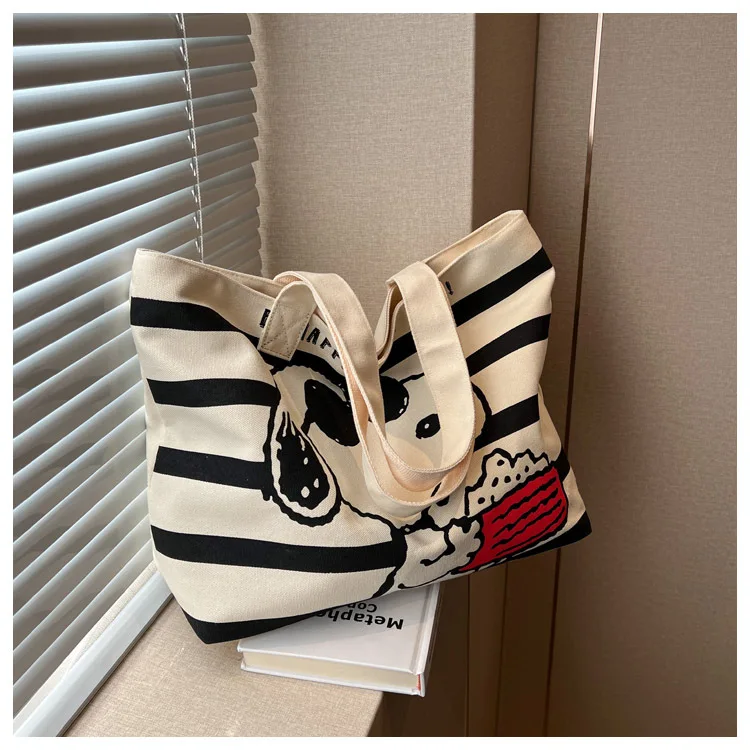 Snoopy Cute Cartoon Fashion Trend Large Capacity Canvas Bag Student Bag Tote Bag Changing Bag Party Surprise Highlights