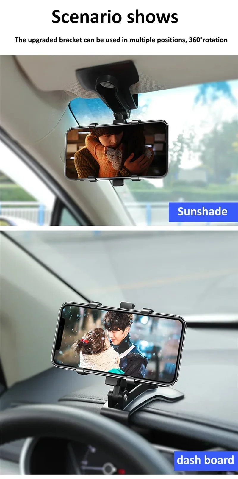 • Secure Mounting :The holder’s strong suction cup and clip design ensures that your phone stays securely in place while driving.