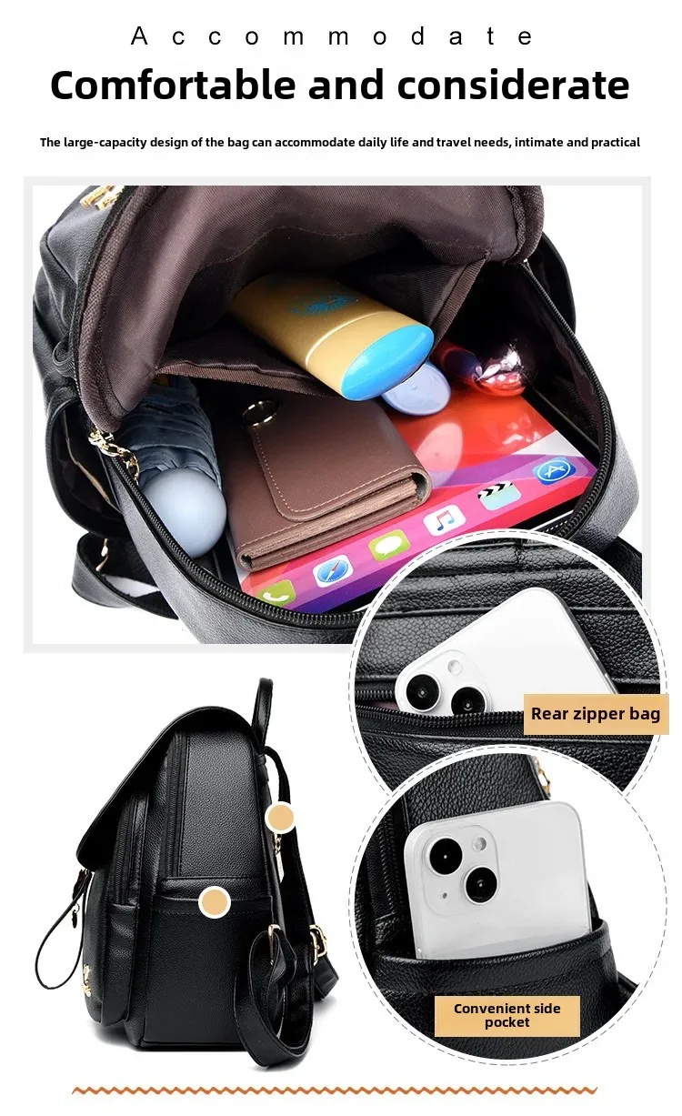 • Soft Leather Material : Crafted from soft leather, this backpack combines durability with a luxurious feel.